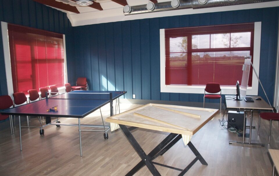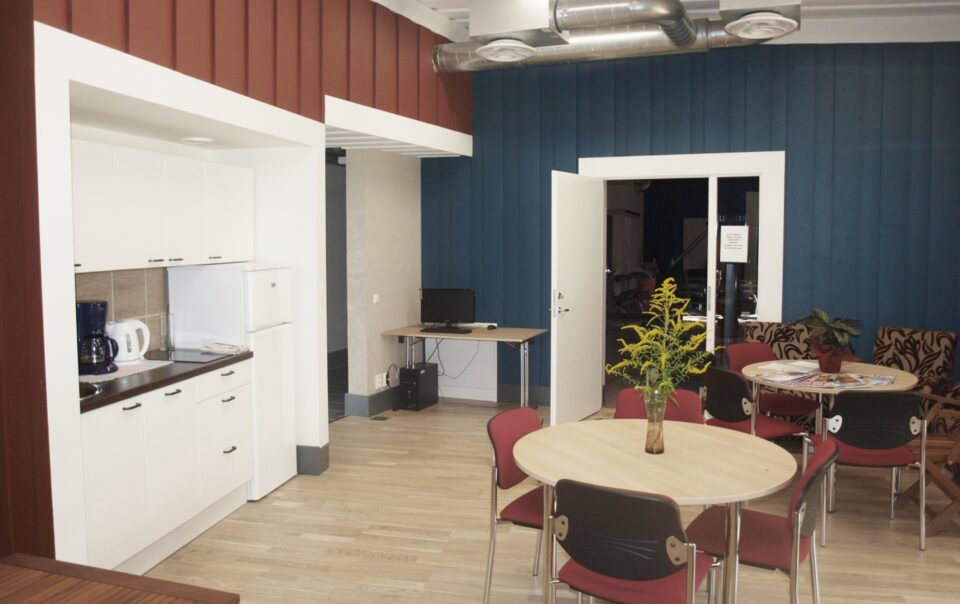 The part of the building, which is covered with soil, is designed as an artificial mountain that can be used for sporting activities – cycling, skating, etc. In winter, ski and toboggan run. Tribe to volleyball court. Artificial Hill softens the borderline transition from the typical Soviet buildings to the village architecture, which is a community center building in its own style. Is it good or bad – decide for yourself …